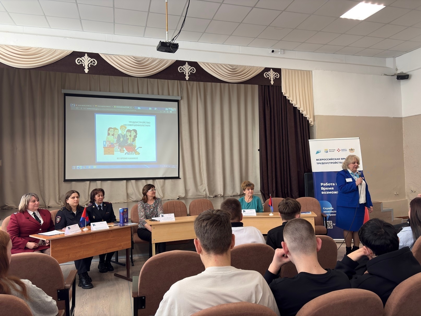 20 марта 2026 года ведущий специалист-эксперт территориального отдела в Шарьинском районе Попова Т.В. приняла участие в областной ярмарке трудоустройства, которая прошла в Вохомской средней школе с учащимися 9-11 классов под девизом «Работа в России. Время возможностей».