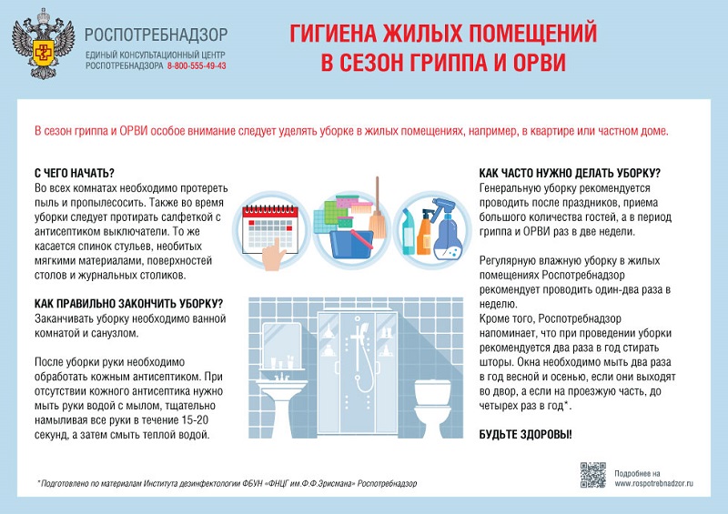 В сезон гриппа и ОРВИ особое внимание следует уделять уборке в жилых помещениях.